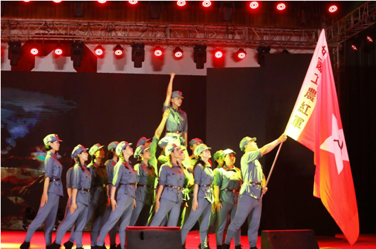 大會(huì)休會(huì)10分鐘后,一曲《紅旗頌》拉開(kāi)了文藝匯演序幕。飄揚(yáng)的紅旗蕩起火紅的海洋,帶人進(jìn)入革命的世界,心情豪邁,催人奮進(jìn)。緊接著,《我的祖國(guó)》、《十送紅軍》、《唱支山歌給黨聽(tīng)》、《朗誦》、《打靶歸來(lái)》、《在希望的田野上》、《戲曲》、《祖國(guó)不會(huì)忘記》等節(jié)目一個(gè)比一個(gè)精彩,一曲比一曲高亢,歡快的鼓點(diǎn)、優(yōu)美的舞姿將中華兒女團(tuán)結(jié)之心、愛(ài)國(guó)之情、幸福之悅演繹得酣暢淋漓,現(xiàn)場(chǎng)氣氛熱烈而又溫馨。特別是情景劇《十送紅軍》,悠揚(yáng)的嗩吶聲、優(yōu)美的舞姿,展現(xiàn)了紅軍前仆后繼、披荊斬棘的頑強(qiáng)戰(zhàn)斗,深深表達(dá)了革命根據(jù)地人民與紅軍難舍難分的情感?!独收b》節(jié)目中講述了黨的百年奮斗史,展示了黨的豐功偉績(jī),謳歌了偉大新時(shí)代。一段段的深情回憶、一句句鏗鏘誓言,激發(fā)出拳拳愛(ài)黨心、濃濃愛(ài)國(guó)情。節(jié)目匯演中間,播放了《安陽(yáng)中聯(lián)轉(zhuǎn)型升級(jí)宣傳片》、《企業(yè)文化宣傳片》,全體黨員聚精會(huì)神地觀看,暗淡的燈光下涌動(dòng)著對(duì)企業(yè)最為強(qiáng)烈地情感,最為堅(jiān)定的意志。