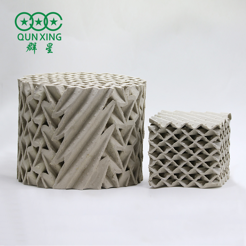 陶瓷波紋填料是一種新型規(guī)整填料,它是由許多具有相同幾何形狀的填料單元體組成。由于陶瓷的結(jié)構(gòu),具有良好的親水性能,其表面可形成極薄的液膜的湍動及氣流的傾斜曲折通道能促進氣流但又不阻擋氣流使陶瓷填料能與金屬填料相匹敵,而其耐腐蝕、耐高溫性能金屬填料卻無法相比。表面結(jié)構(gòu)有良好的濕潤性能,能使液體加快流動、使填料滯液量降至低。從而降低了過熱、聚合和結(jié)焦的機會。