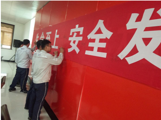 (5)公司安全誓詞:企業(yè)安全生產(chǎn)是我的崇高職責(zé),為了公司安全生產(chǎn),為了家庭幸福美滿,我們一定要做到“安全時(shí)刻在線,幸福相伴終生”,堅(jiān)決履行自己的安全職責(zé),遵守安全操作規(guī)程、規(guī)章制度,自覺做到不傷害自己、不傷害他人、不被他人傷害;堅(jiān)決完成安全生產(chǎn)任務(wù),做一名本質(zhì)安全型員工!