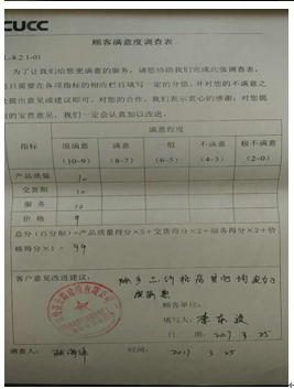 2、致力提升客戶滿意度。為更客觀評價(jià)公司為客戶提供的的產(chǎn)品和服務(wù)水平,發(fā)現(xiàn)自身存在的不足,推動業(yè)務(wù)改善,公司采取各種措施提升客戶滿意度。經(jīng)調(diào)查了解,與當(dāng)?shù)仄渌嗥髽I(yè)相比,我司在客戶中有良好的口碑。